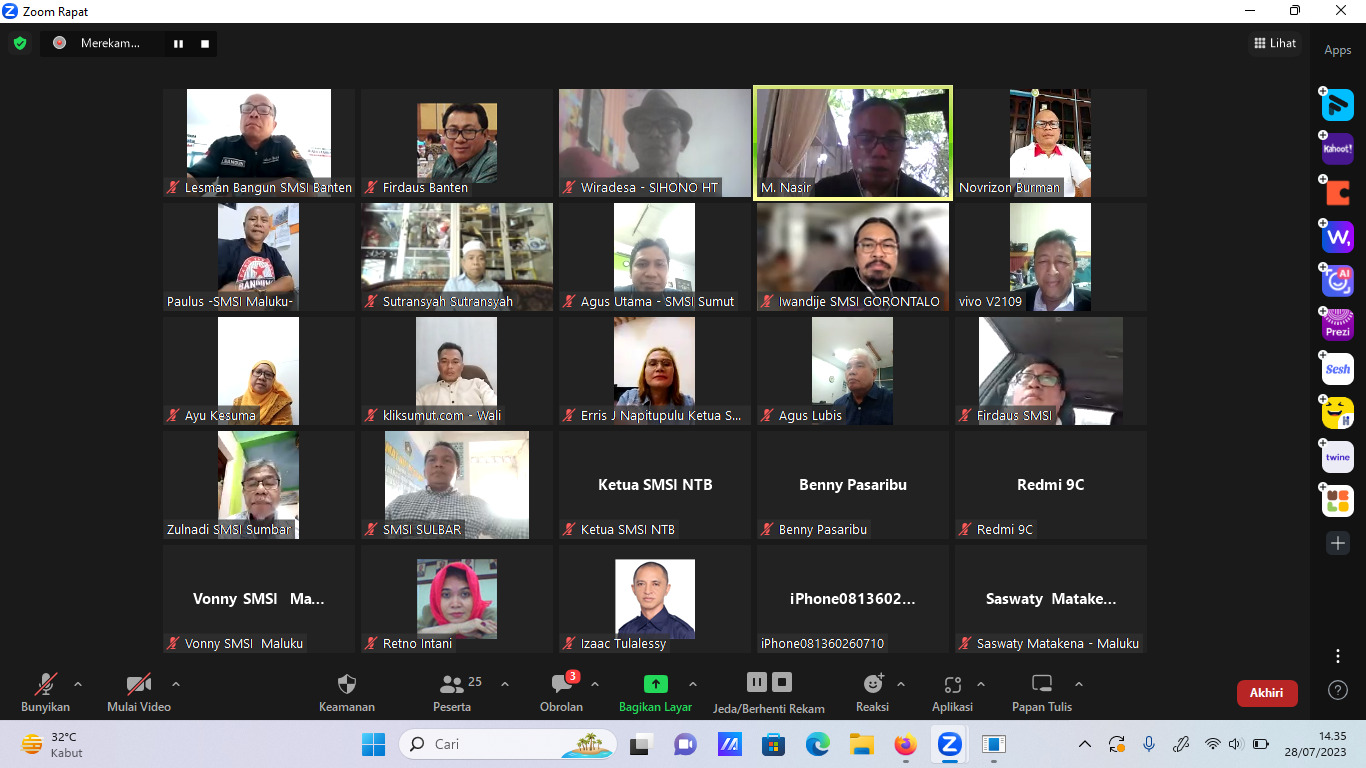 Para pengurus SMSI yang hadir dalam pleno tersebut antara antara lain Yono Hartono (Wakil Ketua Umum SMSI), Sekretaris Jenderal SMSI M Nasir dan wakilnya Wisnutomo, Ketua Departemen Pengembangan SMSI Pusat Ilona Juwita, serta Dr Retno Intani ZA, MSc (Ketua Bidang Pendidikan dan Pelatihan SMSI Pusat), Sihono HT (Yogyakarta), Erris J. Napitupulu, Agus Utama, Zulfikar Tanjung, Benny Pasaribu, dan Ayu Kesuma (Sumatera Utara), Paulus Joris (Maluku), Lesman Bangun (Banten), H. Sutransyah (Sulteng), Hans (Papua) Abdus Syukur (Nusa Tenggara Barat), Zulnadi (Sumatera Barat), Novrizon Burman (Riau), Izaak Tulalessy, Saswati Matakena (Maluku), dan Iwandije (Gorontalo).